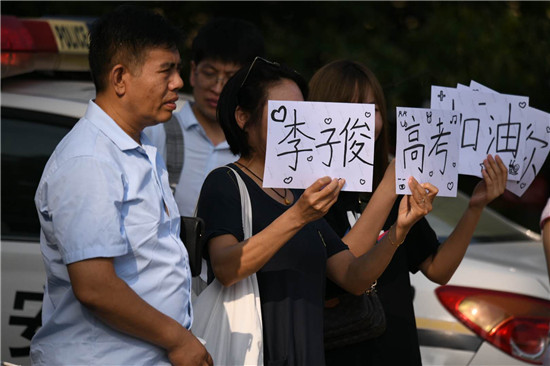 祝愿學(xué)子們考出好成績,今夏實(shí)現(xiàn)金榜題名,是全社會(huì)共同的心聲。7月7日上午8點(diǎn)多,2020年高考開啟神圣時(shí)刻,和往年不同的是,因疫情影響,學(xué)子們帶著口罩入場,作為外援的家長們,更是悉數(shù)趕到考場外,為孩子們加油!而辛勤一年的老師們,更顧不上歇一會(huì)兒,也趕到考場外,為學(xué)生擊掌打氣,構(gòu)成周口考場外動(dòng)人的圖景。圖為市一高考場外的家長們舉著加油的牌子,為孩子助威!一高的老師穿上小紅馬甲,當(dāng)志愿者,和進(jìn)場的學(xué)生擊掌助威!