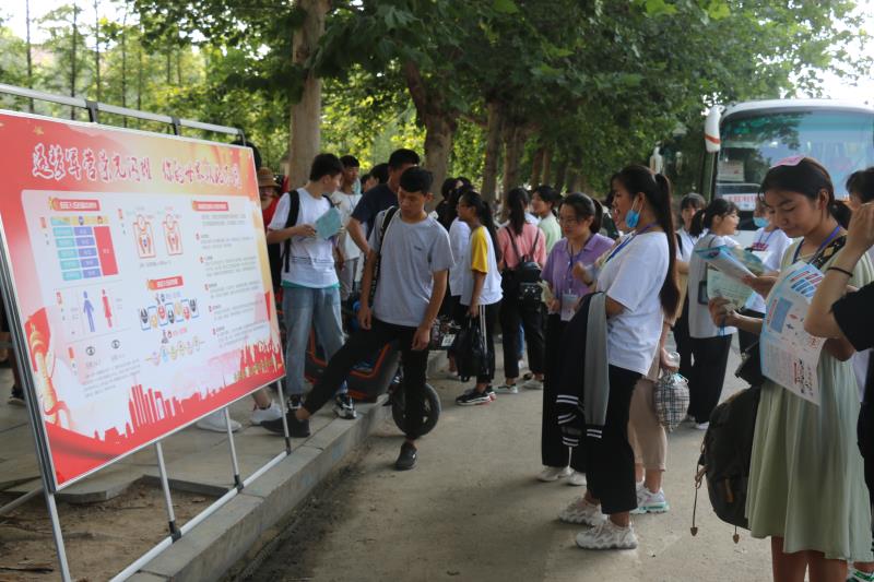 在該縣各標(biāo)準(zhǔn)化高考考點(diǎn)征兵宣傳現(xiàn)場(chǎng),人頭攢動(dòng)、熱鬧非凡。“好男兒,來(lái)當(dāng)兵”大紅條幅和“把忠心獻(xiàn)給祖國(guó),把青春獻(xiàn)給軍營(yíng)”“參軍報(bào)國(guó)盡義務(wù),熱血青年競(jìng)風(fēng)采”的大型宣傳牌格外引人注目,內(nèi)容豐富的征兵宣傳展板一字排開(kāi),《征兵宣傳手冊(cè)》《大學(xué)新生應(yīng)征入伍宣傳單》《征兵政策宣傳解讀手冊(cè)》等征兵宣傳資料擺放在咨詢臺(tái)上一目了然,吸引了眾多的考生和家長(zhǎng)駐足觀看,圍著咨詢臺(tái)詢問(wèn)有關(guān)征兵事宜。