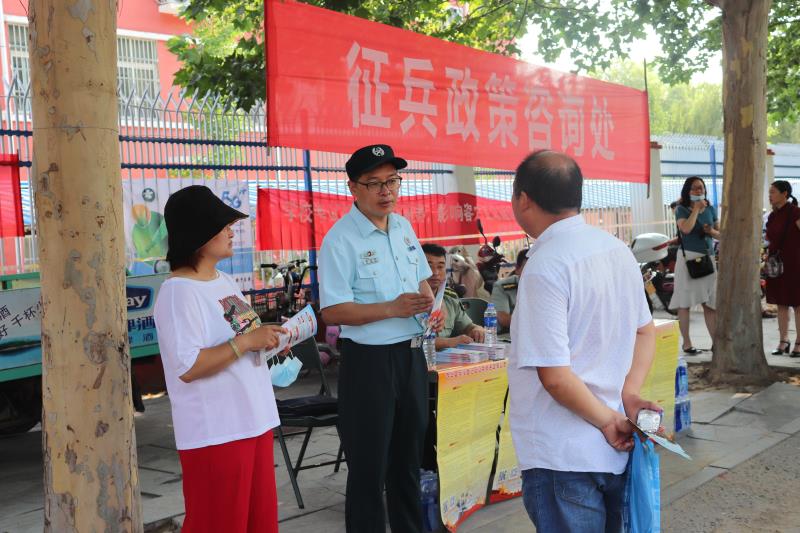 又是一年高考季,征兵宣傳掀高潮。7月7日至8日,西華縣人武部組織城區(qū)箕子臺(tái)、昆山、媧城街道辦事處武裝部,在全縣3個(gè)標(biāo)準(zhǔn)化高考考點(diǎn),設(shè)立征兵咨詢臺(tái)、流動(dòng)宣傳車以及圖板展示等,聯(lián)合開(kāi)展征兵宣傳,引導(dǎo)動(dòng)員教育莘莘學(xué)子獻(xiàn)身國(guó)防,到軍營(yíng)實(shí)現(xiàn)人生價(jià)值。