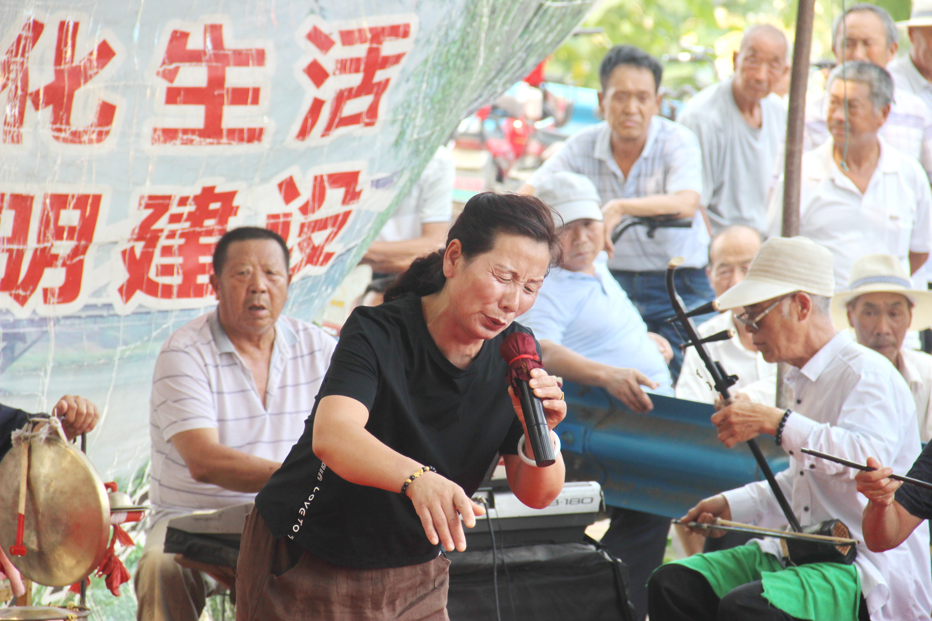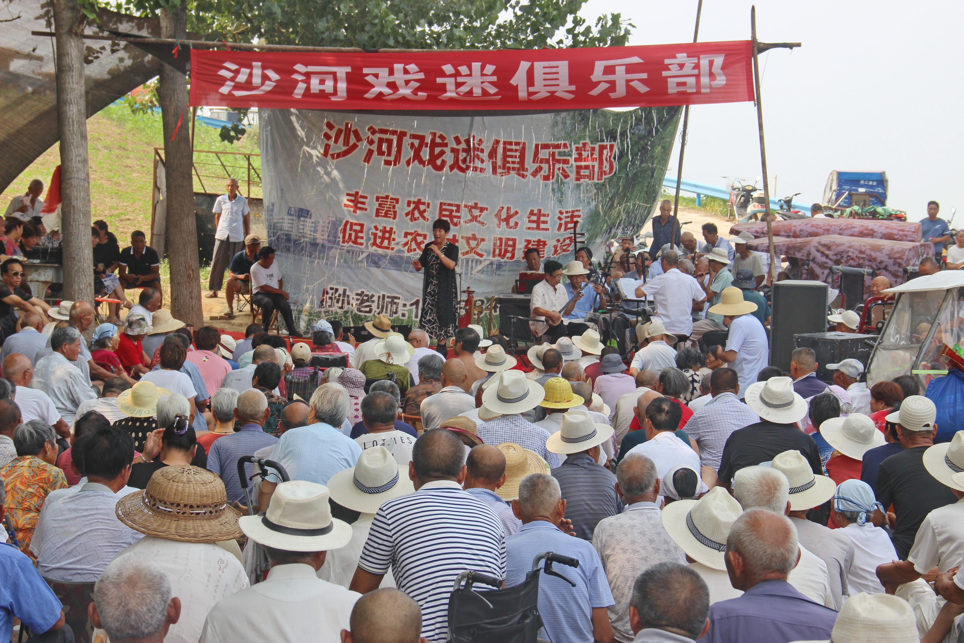 商水縣郝崗鎮(zhèn)大路李村位于漯河郾城、西華、商水三地交界之處,因該村臨近沙河,周邊十多個鄉(xiāng)鎮(zhèn)的文藝愛好者自發(fā)組建了沙河戲迷俱樂部。該俱樂部每周三、周六在河堤樹林中等地方舉辦兩場戲曲演唱會。演員來自周邊附近的戲迷愛好者,有唱常派的、閆派的、崔派的、豫東調(diào)的等,后臺樂隊也是有民間文藝愛好者自帶樂器免費表演,主持人由退休老教師、老干部組成,加上群眾捐款捐物幫助俱樂部添置音響等設備,目前在郝崗鎮(zhèn)文化部門的指導下該俱樂部已舉辦48期,成為周邊群眾才藝表演的好地方。