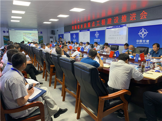 參觀結(jié)束后,與會(huì)人員在沈丘項(xiàng)目部會(huì)議室召開了全省水運(yùn)重點(diǎn)工程復(fù)工復(fù)產(chǎn)推進(jìn)會(huì)議。會(huì)議傳達(dá)了近期河南省有關(guān)安全、防汛、“六比一創(chuàng)”和節(jié)能減排競賽等各項(xiàng)工作部署以及全省交通運(yùn)輸工作半年會(huì)議精神。