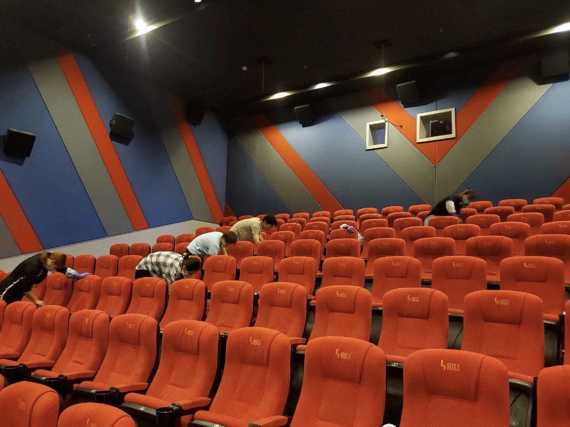 “停業(yè)六個月,終于等來了即將開門的喜訊。”建新路一家影城工作人員說。由于防疫需要,自1月24日以來,一直處于停業(yè)狀態(tài)。7月20日上午,記者來到影院看到工作人員正在對觀影設備進行檢測、調(diào)試,并對影廳、公共區(qū)域等處進行深度防潮防霉、消毒工作,以安全整潔的環(huán)境迎接影院重開。