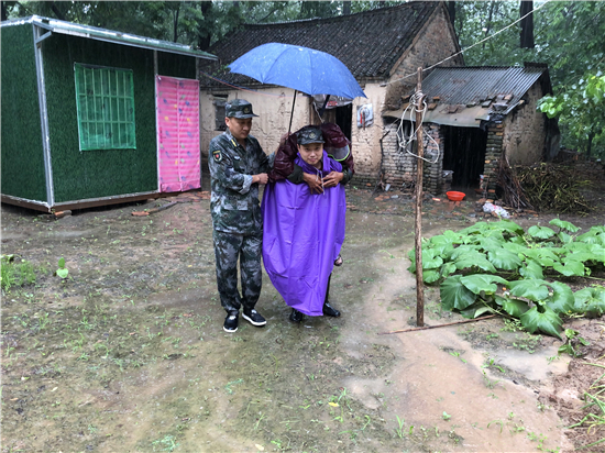 強降雨導(dǎo)致部分地勢較低的農(nóng)房及農(nóng)田被淹,在排查中,發(fā)現(xiàn)鄭老莊村幾處農(nóng)房被水淹泡,隨時有倒塌的危險,了解這一情況后,該鎮(zhèn)第八工作區(qū)區(qū)長、“中國好人”、優(yōu)秀退役軍人蔣昆立即組織鄭老莊村兩委人員及民兵應(yīng)急隊,第一時間趕到現(xiàn)場,轉(zhuǎn)移隱患點周圍住戶。“雨越來越大,你們這個屋今晚上不能住了,反正隨時都有倒塌的危險,把要緊的東西收拾一下,跟到我們走快點”蔣昆勸說鄭老莊村受災(zāi)的一名老大爺。