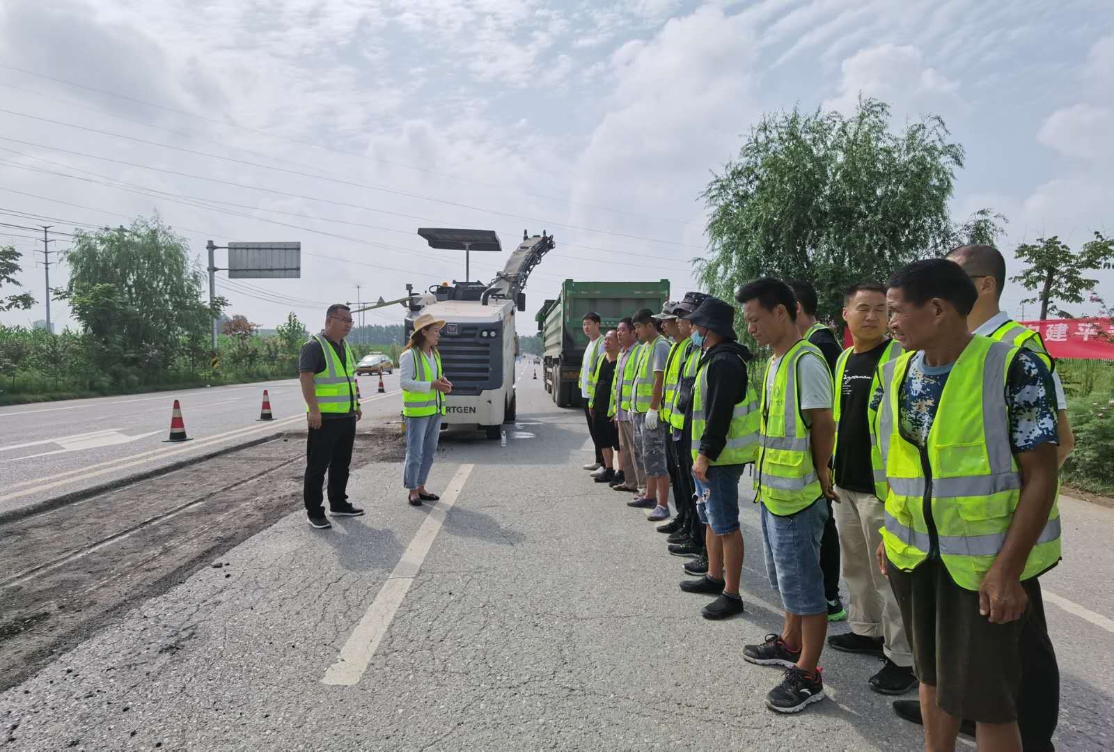 接到搶險任務(wù)后,市公路橋梁應急搶險中心迅速啟動,在較短的時間內(nèi)到達現(xiàn)場進行搶險作業(yè),施工人員按照公路養(yǎng)護安全作業(yè)規(guī)程設(shè)置了作業(yè)控制區(qū),對交通進行了有效管制疏導;施工搶修人員以人機結(jié)合的方式對坑槽病害進行了填補和修整。演練期間人員著裝規(guī)范,交通警示標志、告示牌、作業(yè)機械設(shè)備齊全、完好。操作流程符合作業(yè)規(guī)范,現(xiàn)場安全文明施工措施到位,展示了良好的應急事件處置能力。此次演練參戰(zhàn)干部職工共計34人,指揮車1輛、銑刨機、攤鋪機、壓路機、抑塵機、霧炮車等機械設(shè)備參與應急演練。有效檢驗了在遇到突發(fā)事件時組織、協(xié)調(diào)、配合的快速反應能力以及熟練處置突發(fā)事件的方法、過程,進一步驗證了公路水毀病害應急預案的可執(zhí)行性,為今后突發(fā)公路安全事故應急救援積累了寶貴的實戰(zhàn)經(jīng)驗。