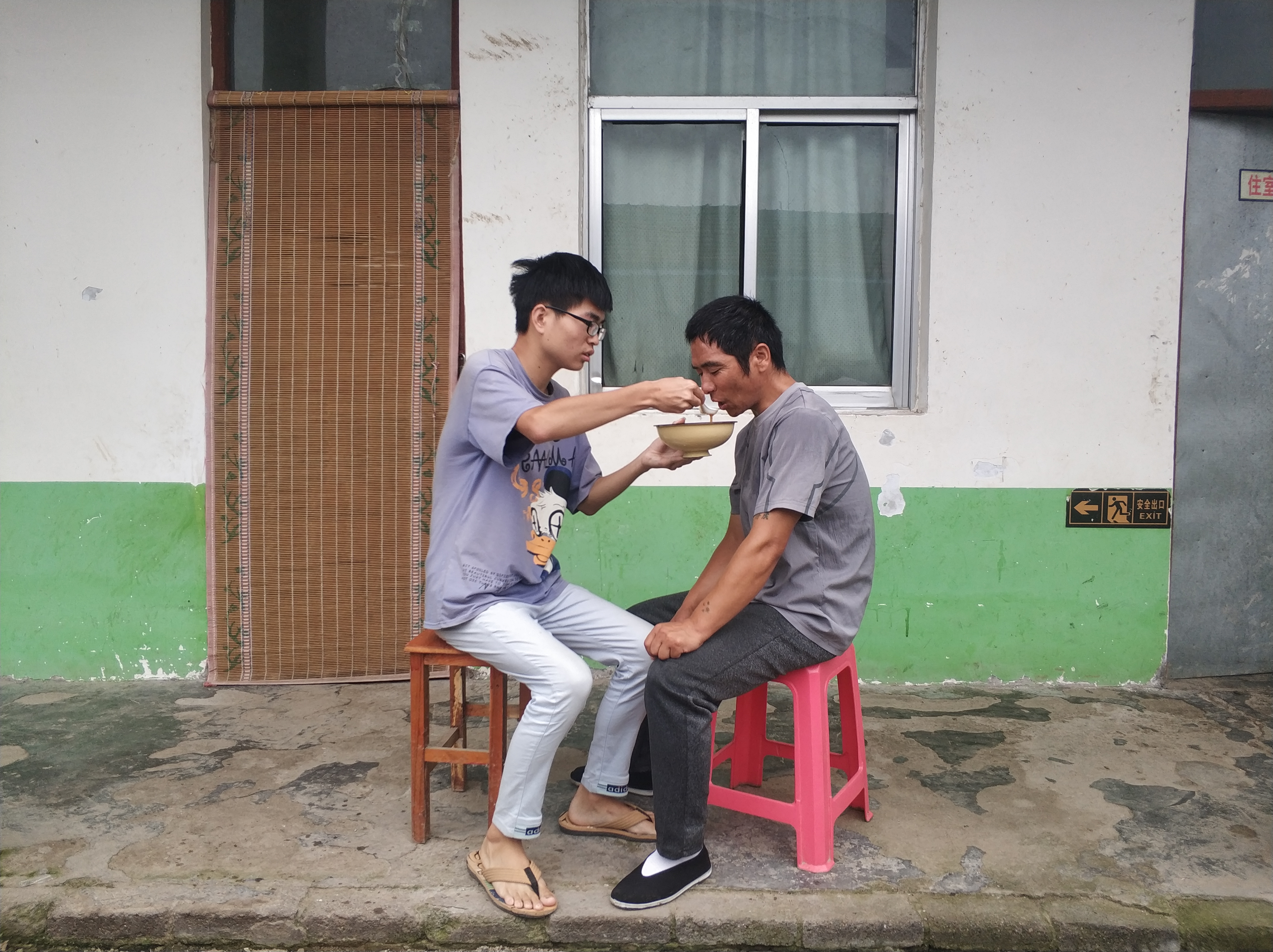 “2018年2月17日晚上,我爸突然在外暈倒,被好心鄰居送回了家,我因?yàn)槟暧谉o(wú)知,不知是發(fā)病,沒(méi)有及時(shí)送醫(yī)院救治,耽誤了病情,導(dǎo)致腦部嚴(yán)重出血、水腫?!鄙廴f(wàn)成回憶起往事,眼中噙滿了淚水。 當(dāng)時(shí),邵萬(wàn)成正在讀初二,不得已休學(xué),在家照顧父親。邵增做完手術(shù)后,從吃、喝、拉、撒,到穿衣、擦拭身體、肢體康復(fù)訓(xùn)練等,事無(wú)巨細(xì),邵萬(wàn)成都用心地護(hù)理。日子一天天過(guò)去了,家中的積蓄逐漸耗盡,邵萬(wàn)成覺(jué)得天都要塌了!