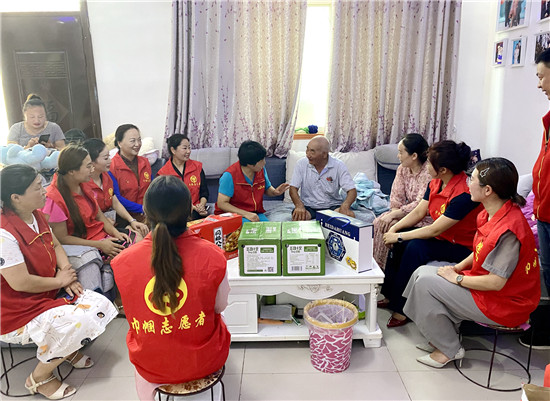 當(dāng)日下午,志愿者及愛心商家一行20多人,在駐村干部及村支部書記陪同下,來到遲營鄉(xiāng)順河村走訪慰問退伍老兵和老黨員,為他們送去豆奶、八寶粥、飲料、糕點(diǎn)等慰問品。大家不顧酷暑高溫天氣,走村入戶,一家一家地走訪,為退伍老兵送去節(jié)日的問候,聆聽老兵講述那艱苦卓絕的戰(zhàn)爭和轟轟烈烈社會主義建設(shè)的歲月,讓他們感受到黨和政府及社會的關(guān)懷關(guān)愛,受到好評。