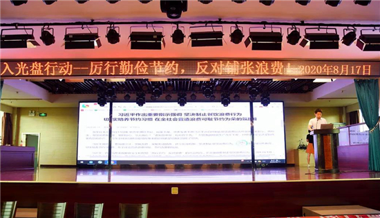 與會(huì)人員首先學(xué)習(xí)了習(xí)近平總書記關(guān)于“厲行勤儉節(jié)約、反對(duì)鋪張浪費(fèi)”的重要指示精神。習(xí)近平總書記指出,餐飲浪費(fèi)現(xiàn)象,觸目驚心、令人痛心!“誰(shuí)知盤中餐,粒粒皆辛苦。”盡管我國(guó)糧食生產(chǎn)連年豐收,對(duì)糧食安全還是始終要有危機(jī)意識(shí),今年全球新冠肺炎疫情所帶來(lái)的影響更是給我們敲響了警鐘。習(xí)近平強(qiáng)調(diào),要加強(qiáng)立法,強(qiáng)化監(jiān)管,采取有效措施,建立長(zhǎng)效機(jī)制,堅(jiān)決制止餐飲浪費(fèi)行為。要進(jìn)一步加強(qiáng)宣傳教育,切實(shí)培養(yǎng)節(jié)約習(xí)慣,在全社會(huì)營(yíng)造浪費(fèi)可恥、節(jié)約為榮的氛圍。