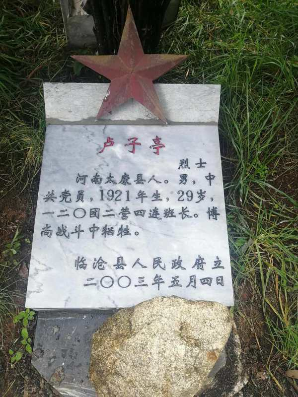 據(jù)悉,盧子亭,河南省周口市太康縣人,生于1921年,是一名中共黨員,是原云南軍區(qū)第14軍120團(tuán)二營四連班長,1950年9月在云南省臨滄市臨翔區(qū)博尚戰(zhàn)斗中壯烈犧牲,年僅29歲。