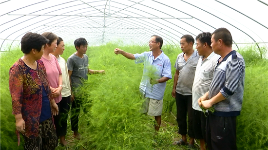 當(dāng)天,一場技術(shù)講座正在如期舉行,當(dāng)?shù)赜忻奶J筍種植“土專家”程殿明說:“咱這蘆筍種植,要以噴灑生物藥為主,在有機(jī)種植上,千萬不能用有機(jī)磷類的。大棚要想多掙錢,眼下管理是關(guān)鍵,長勢好了,進(jìn)入冬季,一個棚采摘就能掙三到五千塊錢?!?/p>