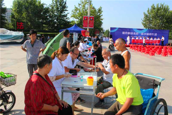 儀式現(xiàn)場,多家單位負(fù)責(zé)人宣讀了“提升健康素養(yǎng) 樂享銀齡生活”倡議書。儀式結(jié)束后,現(xiàn)場舉行大型義診、健康咨詢、文藝表演等活動(dòng)。市、區(qū)醫(yī)療單位設(shè)立13個(gè)咨詢服務(wù)臺,圍繞“提升健康素養(yǎng) 樂享銀齡生活”活動(dòng)主題,現(xiàn)場普及老年健康知識,通過擺放健康知識展版、發(fā)放健康宣傳折頁、提供健康咨詢和現(xiàn)場義診服務(wù)等形式,為老年人提供量血壓、測血糖、測視力、等健康服務(wù)。針對常態(tài)化疫情防控中對老年人的生活照顧、健康管理、醫(yī)養(yǎng)結(jié)合、慢性病預(yù)防等內(nèi)容,結(jié)合老年人特點(diǎn),圍繞營養(yǎng)膳食、運(yùn)動(dòng)健康、心理健康、合理用藥等方面展開科普宣傳指導(dǎo),普及老年健康科學(xué)知識和老年健康相關(guān)政策。叮囑老人做好居家衛(wèi)生,出門戴口罩,做好個(gè)人防護(hù),并針對老年人常見的高血壓、糖尿病、冠心病等,給予健康評估和健康指導(dǎo),讓廣大老年人切身感受到社會的關(guān)懷和溫暖,提高了老年人的健康素養(yǎng),收到了良好的社會效果。
