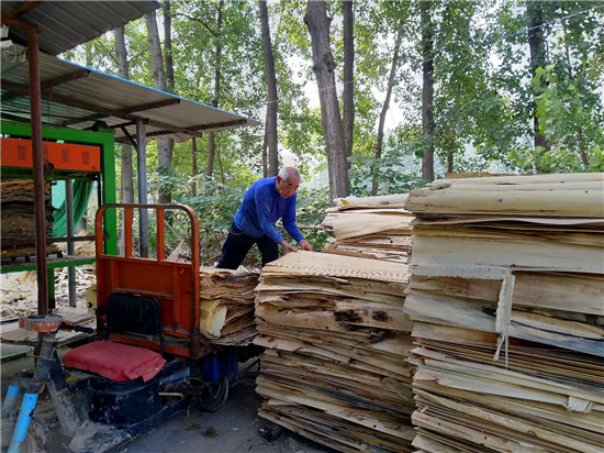 8月28日,商水縣練集鎮(zhèn)馬莊村的四紅木業(yè)有限公司板材加工車間內,機器轟鳴,工人忙著斷木、打圓、卷板,一張張板材被切割后,拉到曬板場晾曬。“有了這份收入,去年全家脫貧摘帽?!闭谲囬g里搬運板材的馬莊村貧困戶王天林對記者說。