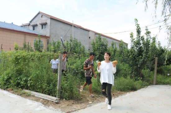 上任伊始,許天勇充分利用水域面積大的優(yōu)勢,發(fā)展鄉(xiāng)村旅游經(jīng)濟(jì),把整理出來的水域種上了荷花,放上了魚苗,在村里還建起了四橦民宿建筑,在廣場邊村里統(tǒng)一管理的一處民宿內(nèi)興辦了特色餐飲,讓來這里垂釣的人有得玩、有得吃、還有得住。許天勇指著許莊村頭的一處坑塘說:“這是我們治理出來比較大的一處,鎮(zhèn)里牽頭在坑塘兩側(cè)建起了扶貧富民冷庫,還建成1200多平方米的游園、近3000平方米的垂釣園,另外,村里又把平整出14.2畝土地種上的梨樹,承包給村民進(jìn)行果蔬間作,現(xiàn)在梨樹已進(jìn)入盛果期,預(yù)計(jì)今年凈收益4萬元左右?!?/p>