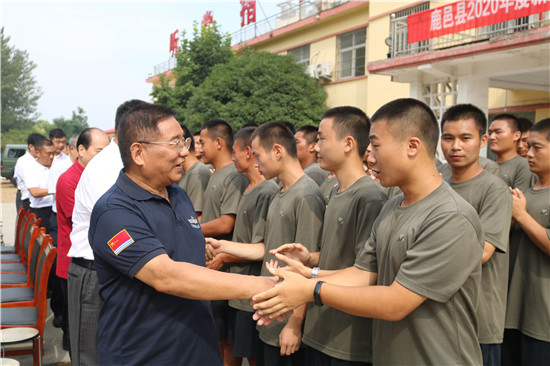 9月9日上午,在鹿邑縣預(yù)定新兵役前訓(xùn)練集結(jié)之際,資深媒體人、北京周口企業(yè)商會秘書長、鹿邑縣雙擁愛心協(xié)會發(fā)起人張杰特別邀請享受正軍級職資待遇、終身享受國務(wù)院政府特殊津貼的鹿邑籍將軍畢啟亮,為鹿邑縣343名體檢、政考雙合格的“準(zhǔn)新兵”上了一堂精彩的國防教育課,同時(shí)還向“準(zhǔn)新兵”每人捐贈一套由周口商水籍原總政治部秘書長、軍事科學(xué)院副政治委員,第二炮兵副政治委員程寶山中將親手題寫“昨日是鄉(xiāng)親,今天成戰(zhàn)友——從軍報(bào)國志高遠(yuǎn),不忘家鄉(xiāng)故土情”的筆記本和鋼筆一支。鹿邑縣人武部部長范亞光,縣退役軍人事務(wù)管理局負(fù)責(zé)同志以及鹿邑縣雙擁愛心協(xié)會團(tuán)體在現(xiàn)場聆聽國防教育課并參加捐贈活動(dòng)。