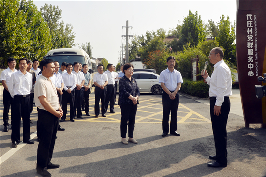 在東壩頭鎮(zhèn)張莊村,考察團沿著習近平總書記的視察足跡,一路走,一路看,詳細了解張莊村美麗鄉(xiāng)村建設、農業(yè)產業(yè)布局、鄉(xiāng)村旅游發(fā)展等方面的取得的成果,對張莊村圍繞“一院一景”“記得住鄉(xiāng)愁”的設計理念,充分利用破舊房屋、無人居住房屋、空閑廢地,精心打造特色亮點的做法十分贊賞。每到一個點,考察團成員們聽得認真、討論得也很熱烈,并與該縣有關人員進行細致具體的溝通與交流,認真學習先進經驗和典型做法。