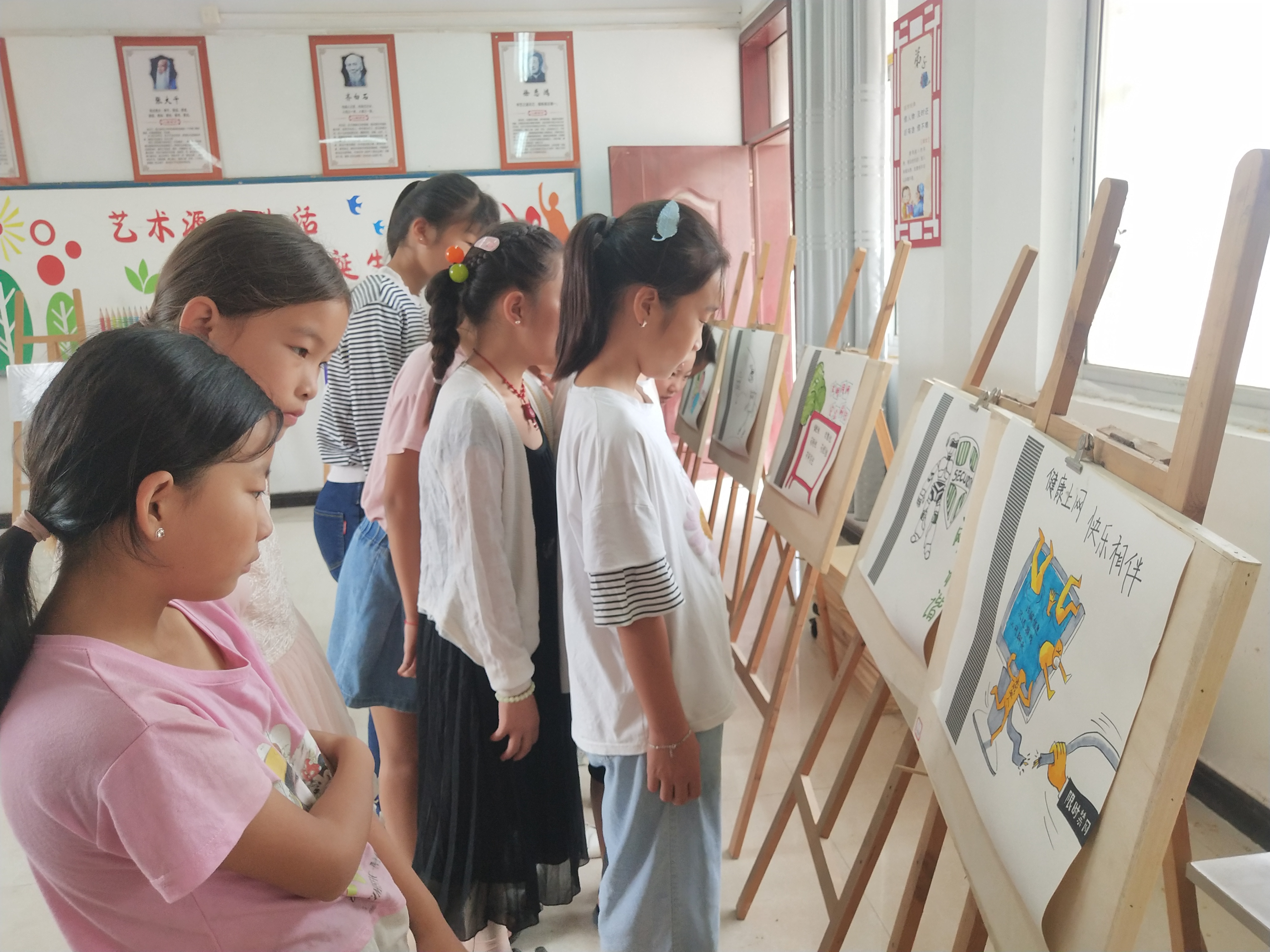 據(jù)介紹,活動中展出的系列網(wǎng)絡(luò)安全教育圖片,由沈丘縣東城支教教師朱曉娜和其項目團隊成員陳洪崢、姚家明、王東等老師共同構(gòu)思策劃。圖片均以簡筆畫的繪制手法,內(nèi)容緊緊圍繞校園網(wǎng)絡(luò)安全、學(xué)生沉迷網(wǎng)絡(luò)、迷戀手機網(wǎng)絡(luò)游戲及其預(yù)防電信網(wǎng)絡(luò)詐騙進行構(gòu)思。