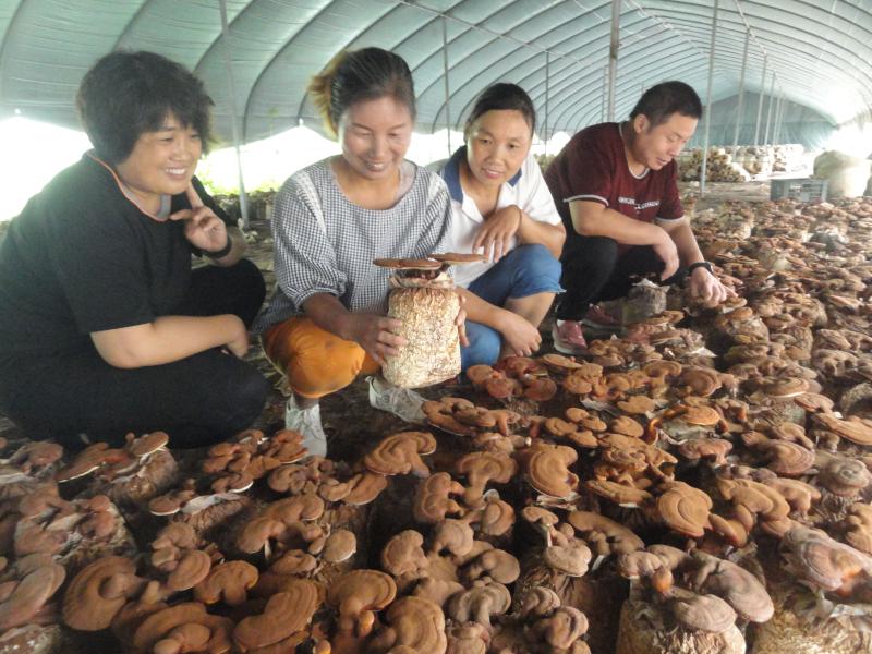 9月15日,商水縣黃寨鎮(zhèn)楊營村“蘑菇王”楊秀麗(左二)在蘑菇扶貧產(chǎn)業(yè)園里向食用菌種植戶傳授靈芝管理技術。近年來,黃寨鎮(zhèn)通過政策扶持、項目促動、培訓指導等舉措,采用“合作社+基地+貧困戶”等模式,集種植、加工、銷售為一體,加快推進食用菌全產(chǎn)業(yè)鏈開發(fā),帶動了周邊300多人種植食用菌脫貧致富。喬連軍 攝