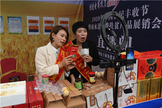 9月22日,兩名“網(wǎng)紅”在商水縣中國(guó)農(nóng)民豐收節(jié)暨商水縣消費(fèi)扶貧產(chǎn)品展銷會(huì)上進(jìn)行直播銷售。近年來(lái),商水縣大力發(fā)展電商扶貧,出臺(tái)政策,幫助農(nóng)民通過(guò)網(wǎng)絡(luò)直播等手段把本地的豬蹄、咸鴨蛋、牛肉、變蛋、黑色五谷等特色農(nóng)產(chǎn)品銷往全國(guó)各地,打開農(nóng)產(chǎn)品銷售新渠道,為農(nóng)民脫貧致富奔小康增添新動(dòng)能。