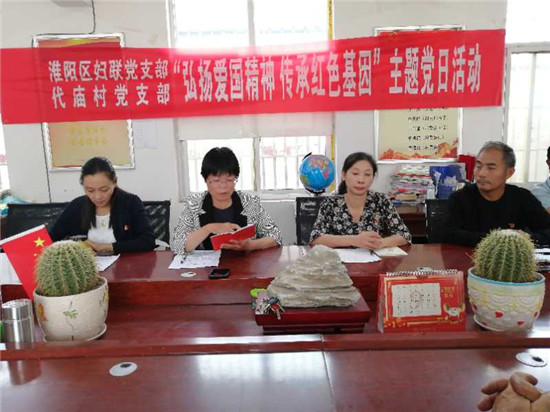 為進(jìn)一步教育引導(dǎo)黨員、干部弘揚(yáng)愛(ài)國(guó)精神,傳承紅色基因,夯實(shí)基層黨支部戰(zhàn)斗堡壘和黨員先鋒模范作用。9月22日(農(nóng)歷初六),淮陽(yáng)區(qū)婦聯(lián)黨支部在幫扶村大連鄉(xiāng)代廟行政村,與該村黨支部共同開(kāi)展“弘揚(yáng)愛(ài)國(guó)精神 傳承紅色基因”9月份主題黨日活動(dòng)。區(qū)婦聯(lián)全體黨員、代廟村黨支部在家黨員參加了活動(dòng)。