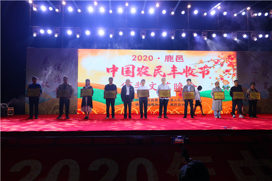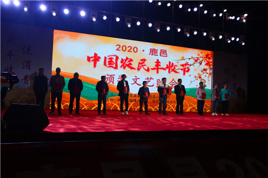 9月22日晚,由中共鹿邑縣委、鹿邑縣人民政府主辦的2020年鹿邑縣農(nóng)民豐收節(jié)文藝晚會在鹿邑縣文化中心廣場舉辦。晚會現(xiàn)場頒布了鹿邑縣“十佳家庭農(nóng)場”“十佳農(nóng)民合作社”“十佳特色農(nóng)產(chǎn)品品牌”“十佳返鄉(xiāng)創(chuàng)業(yè)脫貧致富帶頭人”“十佳脫貧致富先進個人”五項獎項,40名新型農(nóng)民(農(nóng)場、合作社)代表和10個特色農(nóng)產(chǎn)品品牌獲殊榮,他們用行動和產(chǎn)品充分展示了全縣現(xiàn)代農(nóng)業(yè)在過去一年中取得的輝煌成果??h領導雷申、楊所超、侯自峰、王曉征、張國慶、肖西國等出席豐收節(jié)晚會,并為獲獎者頒發(fā)榮譽證書和獎牌。