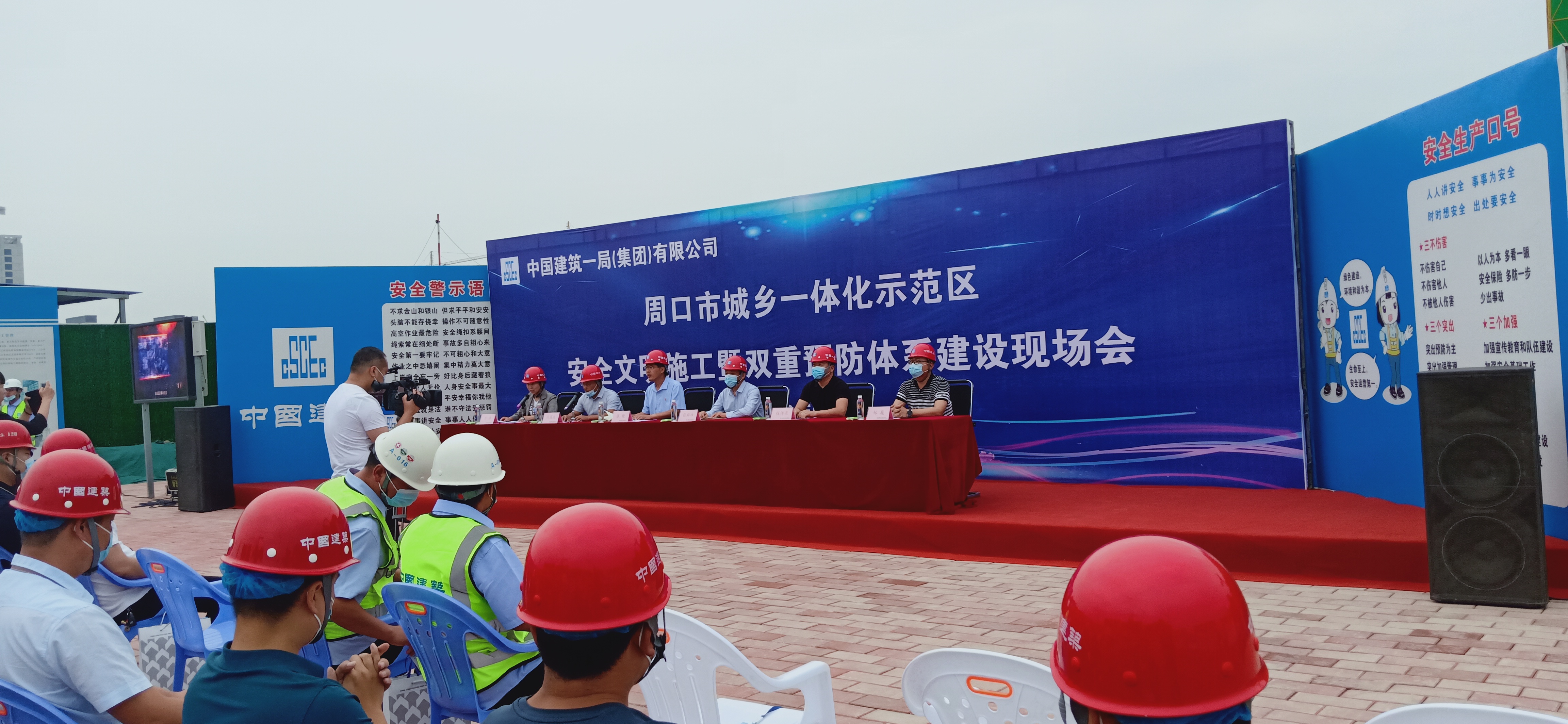 9月29日上午,周口市城鄉(xiāng)一體化示范區(qū)建筑行業(yè)安全文明施工暨雙重預防體系建設現(xiàn)場觀摩會在中建一局周口寧和家園A區(qū)項目地順利舉行。市應急管理局副局長張群峰、市城鄉(xiāng)一體化示范區(qū)管委會副主任張曉、示范區(qū)住建局局長閆國政、示范區(qū)應急管理局局長劉靖等相關領導與67家建筑單位代表300余人共同參加此次現(xiàn)場觀摩會。
