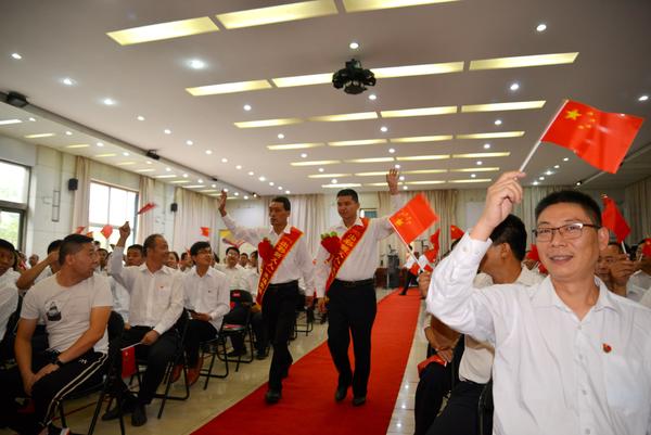 16名“出彩新義人”和8名提名獎(jiǎng)獲得者,身披綬帶,胸帶紅花,在全體職工的注視下,揮手走過(guò)紅毯通道。伴著激昂的音樂(lè),在“出彩新義人”簽名墻上簽上自己的名字,臺(tái)下的員工家屬熱情的揮動(dòng)著手中的國(guó)旗,為他們吶喊、鼓掌……