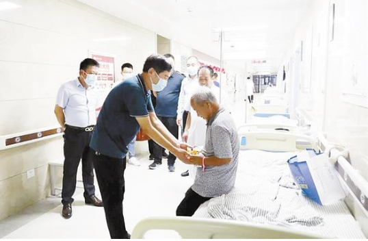 “雙節(jié)”當天,鄲城縣第二醫(yī)健集團縣中醫(yī)院院長水新華,副院長史昊、仵好金、崔冬一行分別到臨床、醫(yī)技等科室慰問節(jié)日值班人員和住院患者,轉(zhuǎn)達了鄲城縣衛(wèi)健委黨組書記、主任付登霄對大家的節(jié)日祝福,并向“援鄂英雄”胡奔奔送去節(jié)日慰問,向住院患者送去月餅和祝福。記者 徐松 通訊員 張洋 攝