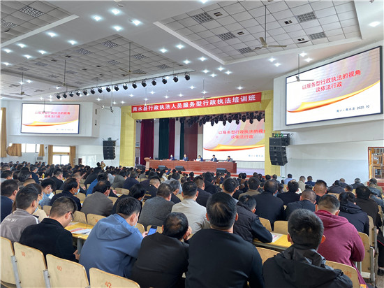 10月19日,商水縣召開行政執(zhí)法人員服務(wù)型執(zhí)法培訓(xùn)會。縣委常委、政法委書記、縣政府黨組成員王勇,市司法局黨組成員、副局長鄭啟新,市司法局依法行政指導(dǎo)科科長楊玉芹出席培訓(xùn)會??h司法局黨組書記、局長王洪輝主持會議。