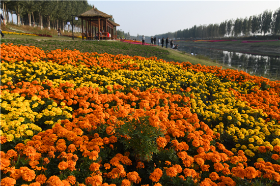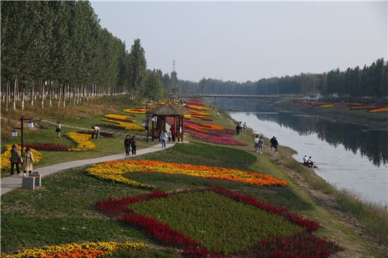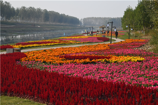10月20日,市民在商水縣高標(biāo)準(zhǔn)農(nóng)田灌溉渠兩岸游玩。