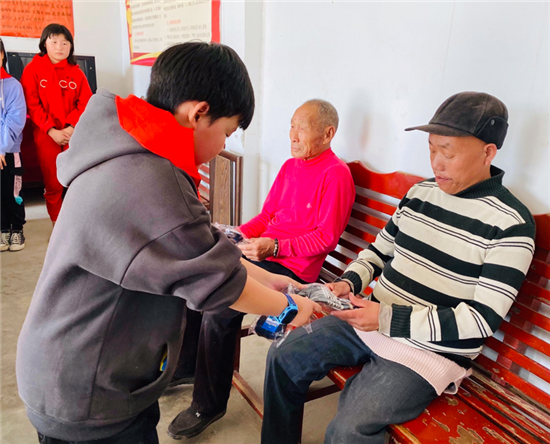 當(dāng)日9時(shí),學(xué)校各中隊(duì)隊(duì)員在校門口準(zhǔn)時(shí)集合,在校領(lǐng)導(dǎo)和大隊(duì)輔導(dǎo)員的帶領(lǐng)下,來到鎮(zhèn)敬老院。在敬老院里,孩子們認(rèn)認(rèn)真真清掃落葉和垃圾,為老人們晾曬被褥、衣物,擦洗用具,陪老人們聊天,還為每位老人贈(zèng)送了一雙“愛心棉手套”。老人們看著一張張青春陽光的笑臉和一雙雙忙碌不停的小手,心里充滿溫暖和感激。