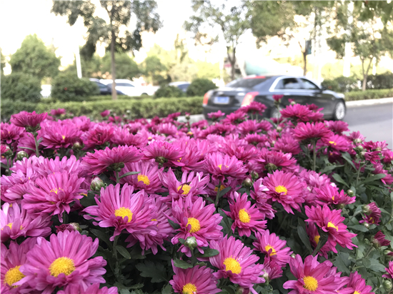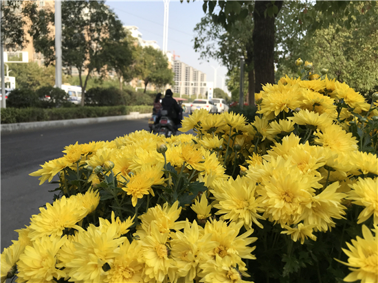 10月23日,霜降時(shí)節(jié),百花早已在寒風(fēng)中凋零,而菊花卻傲骨迎風(fēng)怒放。在周口大道與慶豐東路交叉口,朵朵菊花在陽(yáng)光的照耀下,顯得清淡高雅、卓爾不凡,醉了清風(fēng)、迷了行人。②8