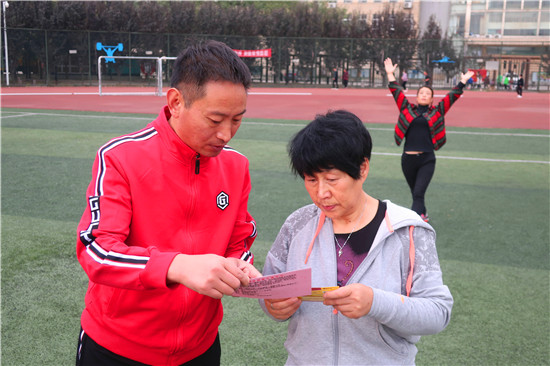 活動(dòng)中,志愿者們向晨練的群眾發(fā)放健康運(yùn)動(dòng)提示卡、防范電信詐騙、掃黑除惡、不動(dòng)產(chǎn)登記等方面的宣傳材料,免費(fèi)派發(fā)“愛心粥券”;細(xì)心講解老年人常見的十大心理、常見病的預(yù)防等強(qiáng)身健體保健常識(shí),引導(dǎo)群眾合法應(yīng)對(duì)“保健品大促銷”、“集資詐騙”等典型詐騙行為;倡導(dǎo)老年人多了解法律知識(shí),以提高識(shí)別詐騙、自我維權(quán)的能力。同時(shí),志愿者們主動(dòng)拾撿體育場內(nèi)的樹葉、雜物等,為晨練群眾創(chuàng)造干凈衛(wèi)生的健身環(huán)境,深受群眾喜愛和稱贊。
