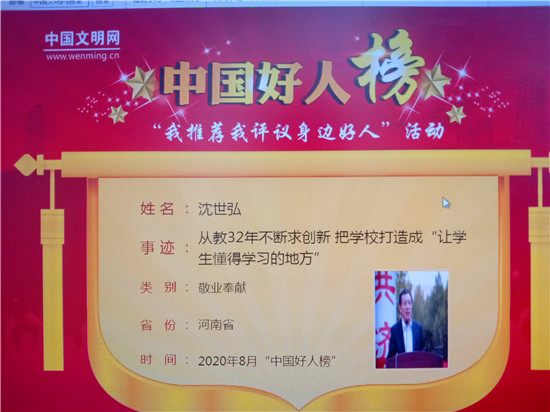 日前,中國文明網公布今年8月、9月中國好人評選結果:太康縣第一高級中學黨委書記、校長沈世弘從教32年不斷求創(chuàng)新,榮登8月敬業(yè)奉獻類“中國好人榜”;太康縣平安養(yǎng)殖專業(yè)合作社理事長王桂芳8年捐款捐物百余萬元幫助困難群眾,榮登9月“中國好人榜”。至此,太康縣中國好人上榜人數(shù)達66人,位居全國縣級市首位。
