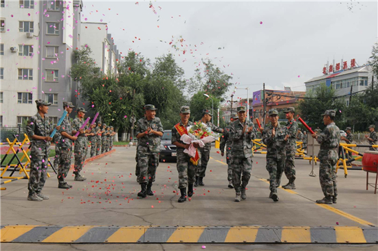 2018年,他積極備戰(zhàn),炎炎夏日把每個(gè)動(dòng)作反復(fù)練、練反復(fù),手裂出了傷口,綁起紗布接著練,臉上被曬的又紅又腫只為了當(dāng)初的誓言,最終他以壓倒性優(yōu)勢(shì)取得全師第一名的好成績(jī)。