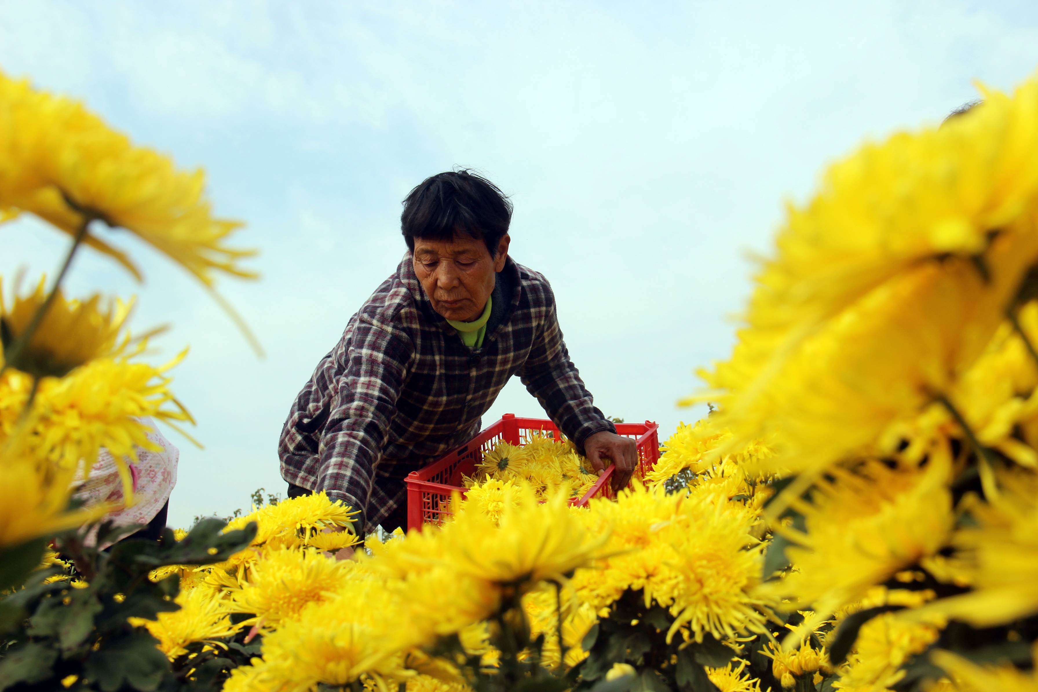 11月3日,商水縣郝崗鎮(zhèn)大路李村貧困戶婦女在李華生的合作社采收金絲黃菊。郝崗鎮(zhèn)政府鼓勵(lì)大路李村負(fù)責(zé)人李華生引進(jìn)金絲黃菊種植帶動(dòng)貧困戶增收致富,目前該村種植面積達(dá)到百畝,畝效益均在6000元以上。記者付永奇通訊員呂耀光攝