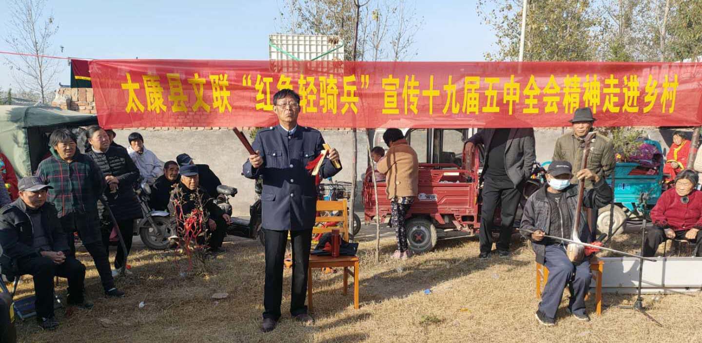 太康縣文聯(lián)主席安義斌表示,作為文藝宣傳戰(zhàn)線的“輕騎兵”,縣文聯(lián)組織藝術(shù)家們成立“紅色輕騎兵”下鄉(xiāng)宣傳黨的十九屆五中全會(huì)精神,不僅是踐行“文藝從人民中來,到人民中去”的文藝精神,更是體現(xiàn)黨的文藝輕騎兵的價(jià)值觀,用最優(yōu)秀的文藝形式將黨的政策送到田間村頭,為我們奮力奪取建設(shè)社會(huì)主義現(xiàn)代化國(guó)家鼓與呼。