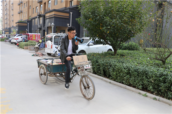 行駛30多分鐘后,劉啟昌來到太康縣城鑫港灣小區(qū),打開喇叭開關(guān),吆喝了起來:“誰家賣書,誰家有多余的書籍賣……”聽到吆喝聲,居民崔海英從家里抱出來一摞書?!叭亲魑臅瑢W(xué)生看了對寫作有好處?!贝藓S褧f給劉啟昌說。
