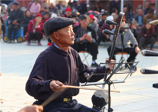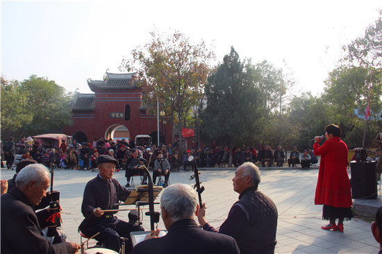 11月10日,戲迷朋友在商水縣郝崗鎮(zhèn)北社村千年古塔旁表演戲曲節(jié)目。初冬時(shí)節(jié),暖陽(yáng)普照,壽圣寺古塔附近的戲迷和樂(lè)器愛好者自發(fā)來(lái)到千年古塔旁表演戲曲節(jié)目,為當(dāng)?shù)厝罕娝蜕暇实奈幕蟛?,進(jìn)一步活躍了農(nóng)村文化生活。①15周口日?qǐng)?bào)·周道客戶端記者付永奇 通訊員 呂耀光 攝