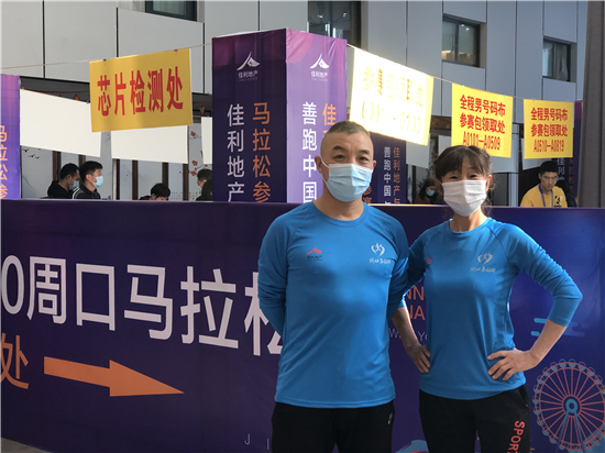 活動現(xiàn)場前來領(lǐng)取賽前裝備的人源源不斷,有的是朋友結(jié)伴而來,有的趁工作間隙而來,還有的帶著孩子前來,十分熱鬧。王勝利先生今年是第四次參加周口馬拉松賽了,他說:“2017年我跑了5小時30分,2018年是4小時28分,2019年跑了4小時17分,通過這幾年堅持不懈地鍛煉,今年我想爭取跑到4個小時以內(nèi),不跟別人比,主要是不斷地自我超越!”今年的周口馬拉松賽還吸引了許多“都市麗人”參加,劉女士就是其中一員,“我今年36歲了,平時就非常喜愛健身、長跑,今年是我第一次報名參加馬拉松賽,希望能夠挑戰(zhàn)自己?!彼嬖V記者。