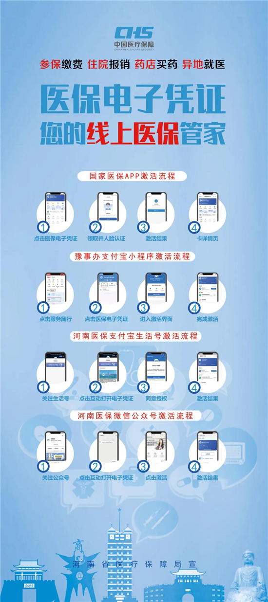 醫(yī)保電子憑證不依托實體卡,領(lǐng)取方式簡單,參保人員可以直接通過國家醫(yī)保App或者通過微信、支付寶,以及經(jīng)由國家醫(yī)保局和河南省醫(yī)療保障局認證授權(quán)的第三方渠道,自助進行認證后激活使用,不需要到服務(wù)大廳領(lǐng)取和激活。