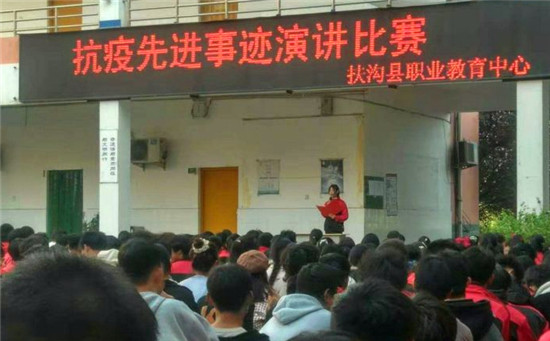 這是扶溝縣職業(yè)教育中心2020級美術(shù)班賈珍珍同學的激情演講。他的演講,感染了在場的1000余名師生。11月14日,為落實扶溝縣教體局《關(guān)于加強新時代中小學思想政治理論課教師隊伍建設(shè)工作的實施方案》中“發(fā)掘地方資源,開展先進人物和紅色教育進課堂活動,讓思政課成為有溫度的課”的具體要求,學校思政處組織開展了以歌頌該縣人民醫(yī)院護士劉海燕先進事跡為主題的“抗疫先進事跡”演講比賽。