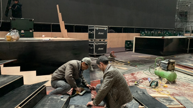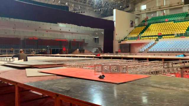 11月23日上午,記者在周口市體育中心看到,由國(guó)際名模馬艷麗領(lǐng)銜的周商大會(huì)國(guó)際時(shí)裝表演秀的舞臺(tái)正在搭建中。