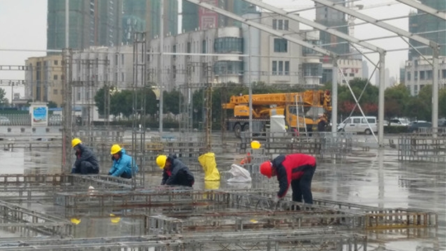 11月23日,記者在周口市體育中心看到,第一屆周商大會(huì)展位的搭建工作正在緊張進(jìn)行,目前周商產(chǎn)品展示展覽區(qū)的主體鋼架結(jié)構(gòu)已見(jiàn)雛形