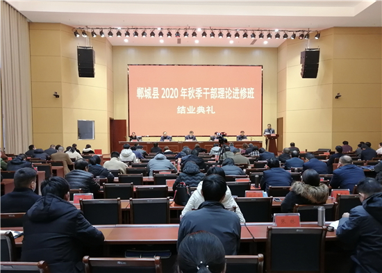 11月25日下午,鄲城縣2020年秋季干部理論進(jìn)修班舉行結(jié)業(yè)典禮,縣委副書記、黨校校長(zhǎng)王獻(xiàn)超,縣委常委、組織部長(zhǎng)蔣磊出席結(jié)業(yè)典禮。