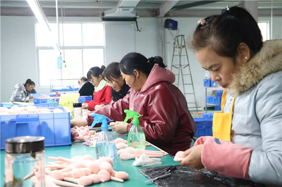 2014年,孫小懶家被列入建檔立卡貧困戶。孫小懶一人帶著三個孩子,不能出遠門務(wù)工,只能守著二畝薄田種些莊稼度日。今年初冬,家門口的河南雅彩美妝用具有限公司開工,孫小懶是第一批主動報名的員工。經(jīng)過崗前培訓(xùn),她正式上崗,主要負責(zé)化妝刷的套管工作,一個月能掙3000多元。“計件工資,干得多就掙得多。等技術(shù)更加熟練后,工資還會上漲,以后的日子會越來越紅火。”孫小懶樂呵呵地說。