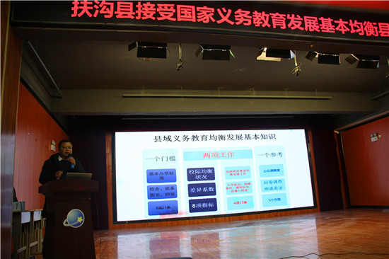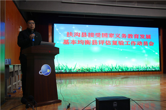 今年是河南省義務(wù)教育發(fā)展基本均衡縣評估的收官之年,扶溝縣將接受國家的抽查復(fù)驗。為進一步做好迎接國家義務(wù)教育發(fā)展基本均衡縣評估復(fù)驗工作,11月25日上午,扶溝縣教體局召開了接受國家義務(wù)教育發(fā)展基本均衡縣評估復(fù)驗工作動員會。教體局全體領(lǐng)導(dǎo)班子、股室負責(zé)人、包鄉(xiāng)人員,各鄉(xiāng)鎮(zhèn)(街道)中心校校長、普教專干、初中校長及迎驗學(xué)校校長300余人參加會議。