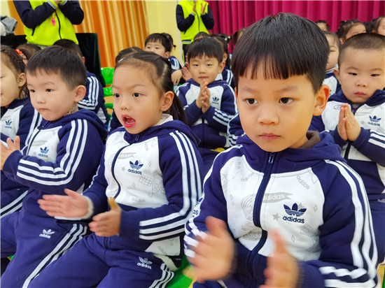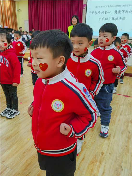 在熱情洋溢的音樂中,中班的運(yùn)動健兒們,雄赳赳氣昂昂地入場了。瞧!他們個個精神抖擻,活力四射,整齊的步伐,響亮的口號,無不體現(xiàn)蓮幼兒童的活潑、自信。“世界真美好”的體操音樂響起,幼兒快樂地舞動身體,時而裝作勇敢的海鷗,時而扮作講衛(wèi)生的小花貓,時而又成了互幫互助的企鵝?;铎`活現(xiàn)的動物模仿操,迎來現(xiàn)場觀眾的熱烈掌聲。隨著一聲響亮的“嘿、哈”,幼兒扎馬步、出拳,一氣呵成。小小的身體,展現(xiàn)大大的能量。掌握中國功夫,鍛煉強(qiáng)健體魄,我們都是功夫?qū)殞?!瞧!大班幼兒在動感的音樂和老師的指揮中精神抖擻、踏著整齊的步伐入場了,他們靈活、有序地變換著各種隊形,像一個個快樂的小精靈。在歡快的音樂中,幼兒都十分投入,和著音樂的節(jié)奏,動作協(xié)調(diào)、整齊有力,時而還發(fā)出“哼哈”的口令聲呢!他們開心地跳著、笑著,跳出了快樂、跳出了自信、跳出了他們對運(yùn)動的喜愛,對健康的追求。