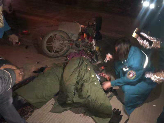 12月11日5時24分許,在商水縣城巴路、湯莊鄉(xiāng)大趙村扶貧服務(wù)點(diǎn)門口處,商水縣舒莊鄉(xiāng)吳莊村11組韓同首駕駛豫P1Z851號小型普通客車由西向東行駛時與相對方向行駛的舒莊鄉(xiāng)北王張村9組張義來駕駛的無牌兩輪摩托車發(fā)生交通事故,造成車輛損壞,張義來及無牌兩輪摩托車乘車人張金在受傷。商水縣交警大隊(duì)與周口人和醫(yī)院立即啟動“警醫(yī)結(jié)合”救治機(jī)制,開通綠色入院通道,采取零繳費(fèi)先救治措施,對傷者迅速進(jìn)行救治,傷者暫時還在救治中。此事故的傷員救治過程,充分展現(xiàn)了“警醫(yī)合作”機(jī)制的優(yōu)越性和可行性,傷者家屬對公安機(jī)關(guān)和醫(yī)院十分感謝。①15