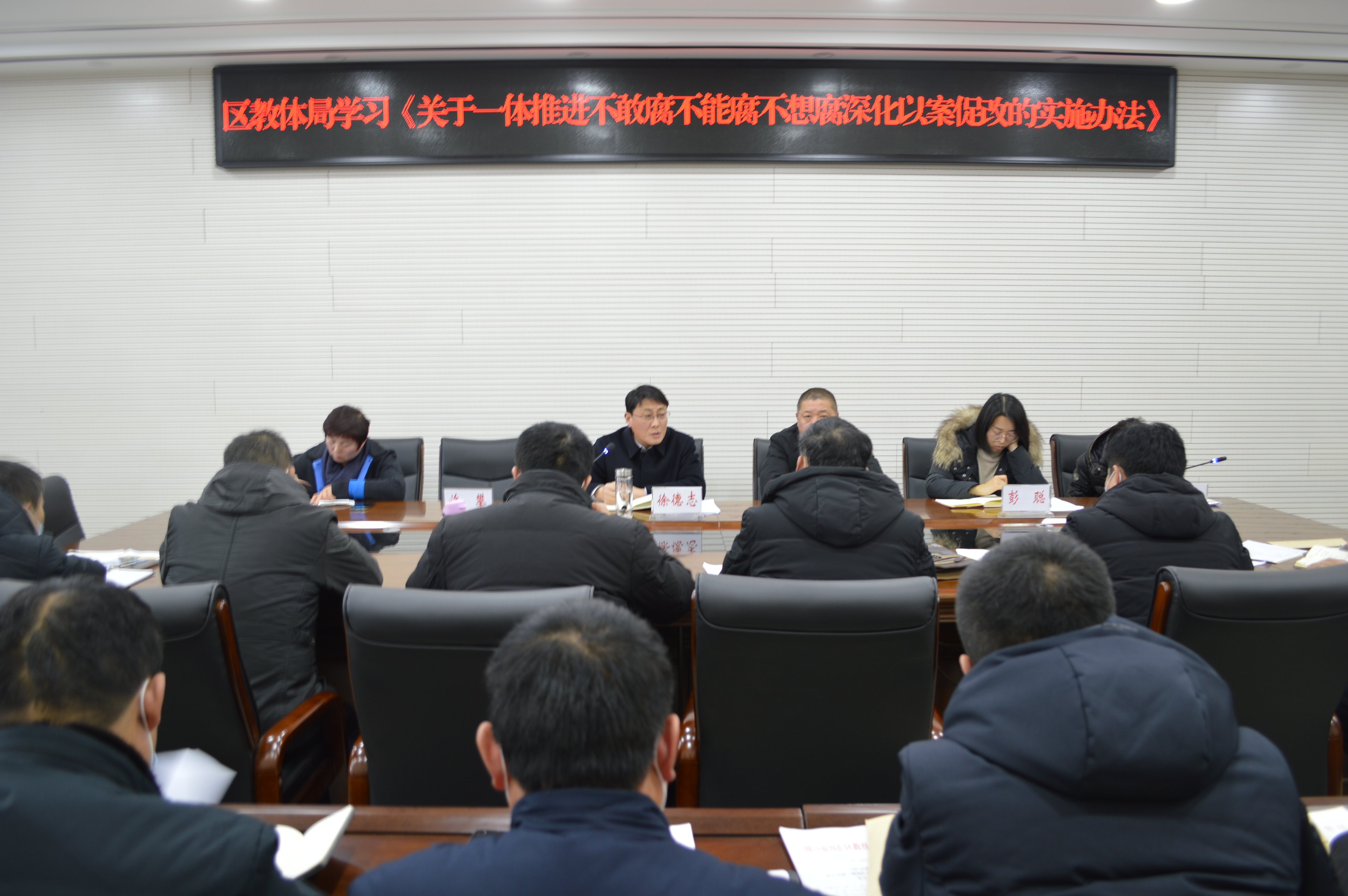 本報訊 (記者 劉華志 通訊員 朱德歌 文/圖)12月15日,川匯區(qū)教體局召開一體推進(jìn)不敢腐不能腐不想腐深化以案促改工作會議,深入學(xué)習(xí)貫徹落實(shí)《關(guān)于一體推進(jìn)不敢腐不能腐不想腐深化以案促改的實(shí)施辦法》,對下一步深化以案促改、全面從嚴(yán)治黨進(jìn)行再動員、再部署。