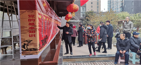 12月11日上午,在中心城區(qū)文昌大道的金色東方社區(qū),川匯區(qū)文聯(lián)舉辦的一場“零距離初心課堂”走進(jìn)基層群眾,普及黨的知識,受到群眾的喜愛。