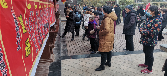 一大早,來自川匯區(qū)文聯(lián)、區(qū)民協(xié)的工作人員,將金色東方社區(qū)的休閑廣場裝扮得格外喜慶,兩條帶有傳統(tǒng)紋飾圖案的噴繪印著謎語和黨的知識,掛在休閑長廊上,吸引著出來曬太陽或散步的居民。區(qū)文聯(lián)黨組書記史濤,區(qū)文聯(lián)黨組成員、副主席游富華,區(qū)人和辦事處副書記武陽,市民協(xié)副主席羅營東、區(qū)民協(xié)主席杜超,區(qū)民協(xié)秘書長任建明等走進(jìn)社區(qū),參加這場活動?!爸袊伯a(chǎn)黨是什么時候成立的?”“1921年7月23日”“答對了,獎洗衣液一壺!”游富華以問答的形式和居民們互動,向居民們普及黨的知識,居民們紛紛參與,氣氛活躍。